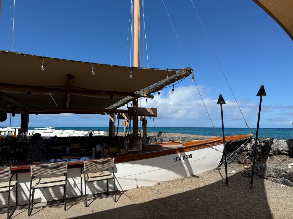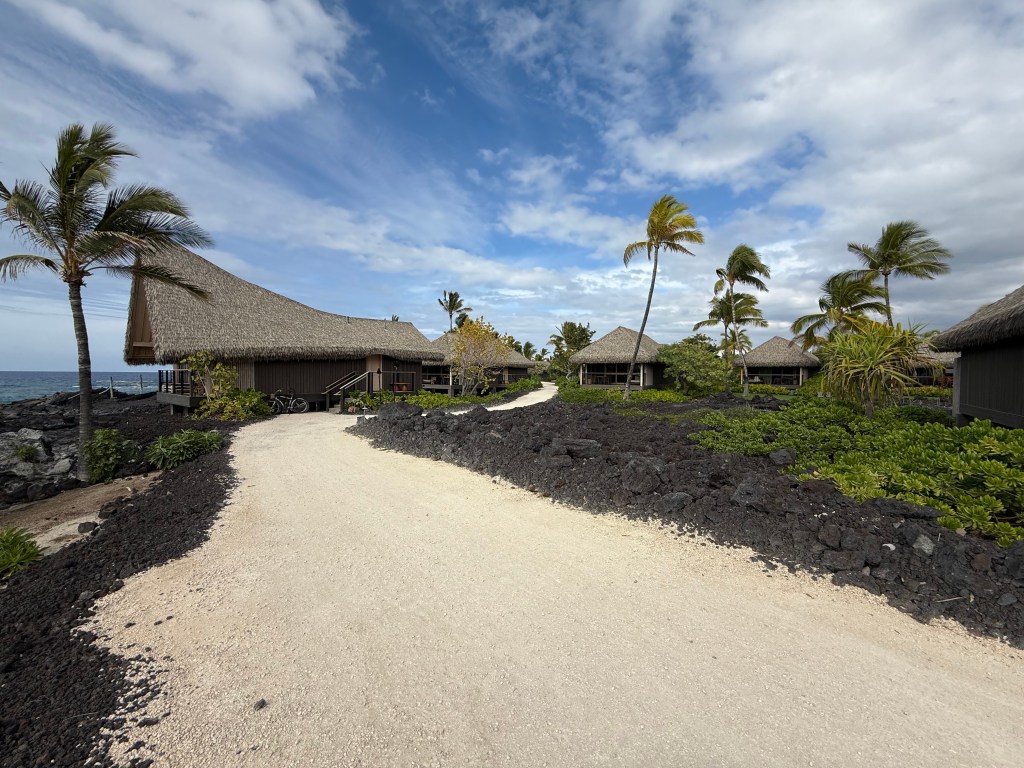 Kona Village, I believe, is the oldest resort on the Big Island. It was certainly a frequent spot for locals and tourists alike, but the tsunami in 2011 destroyed most of the resort at the time. Then, the Rosewood hotel group took it over, with some hefty investments (as they say) from a very wealthy family; they rebuilt Kona Village. It was reopened in late 2023 and definitely has been rejuvenated as if nothing ever happened to it.