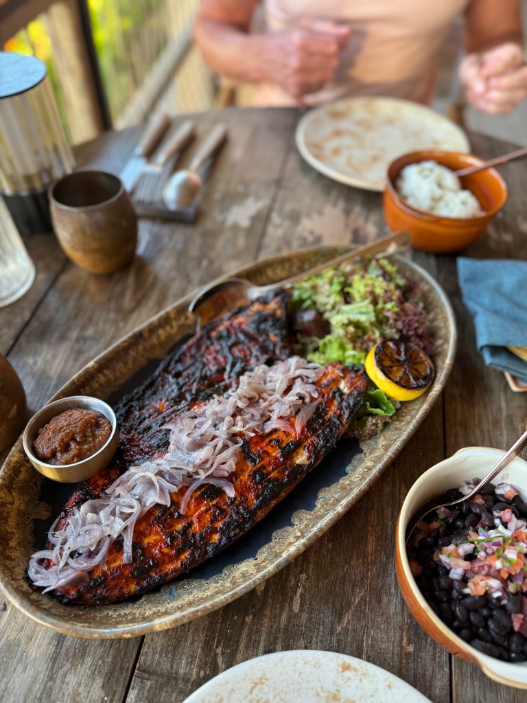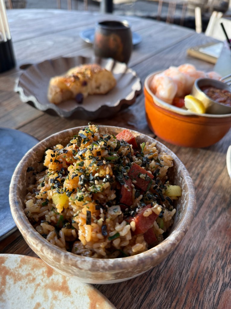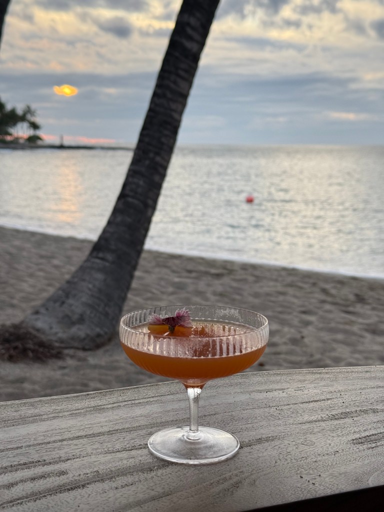 If you have to pick between their 2 main restaurants: Moana or Kahuwai Cook House, I’d say go with Kahuwai Cook House anytime. It’s a more casual place, but the food slaps there (as the kids say these days). We had dinner there three times (yes!), although one of those was their special Paniolo night (BBQ night) – buffet style. I must say, for a $500 dinner that night, it was not worth it for us. We are not the type who stuff our faces with food at buffets (and that’s why we rarely go to buffets), so it was a loss for us from the get-go. But the food was just alright. There was one dish that I had twice (papaya chicken soup); everything else was good but not that great. Drinks – I’d skip – sugary cocktails are not my thing. However, the other 2 nights with their regular menu were so great. The food was exceptional – shrimp cocktails, kanpachi ceviche, spam musubi, pineapple fried rice (yes!), and a whole fish (or in this case, 1/2 a fish) grilled, served with tortillas, rice, beans & ham. The flavoring of all the dishes was really on point: bold, sharp, and Hawaiian!