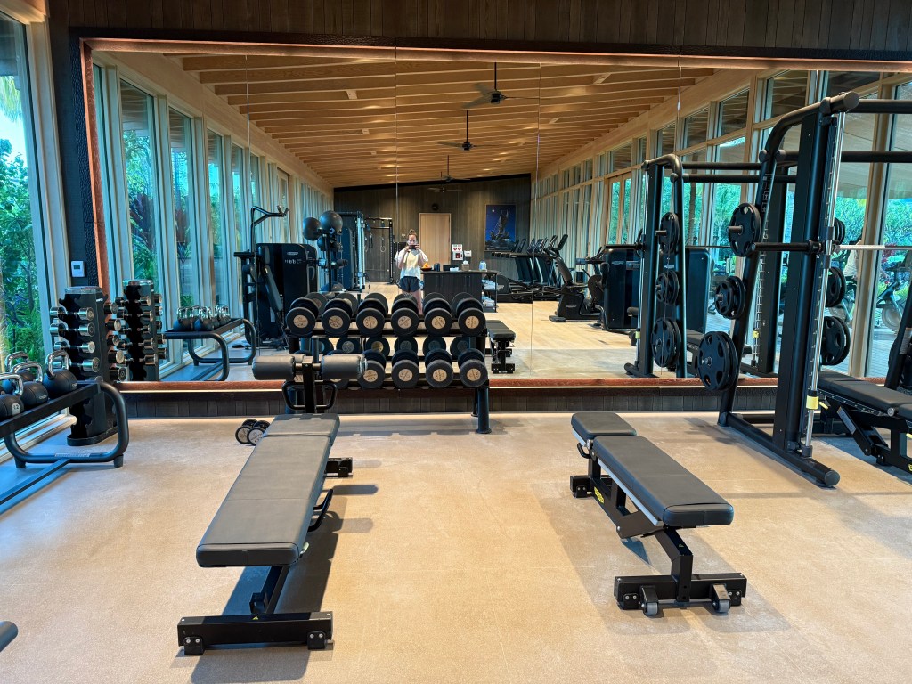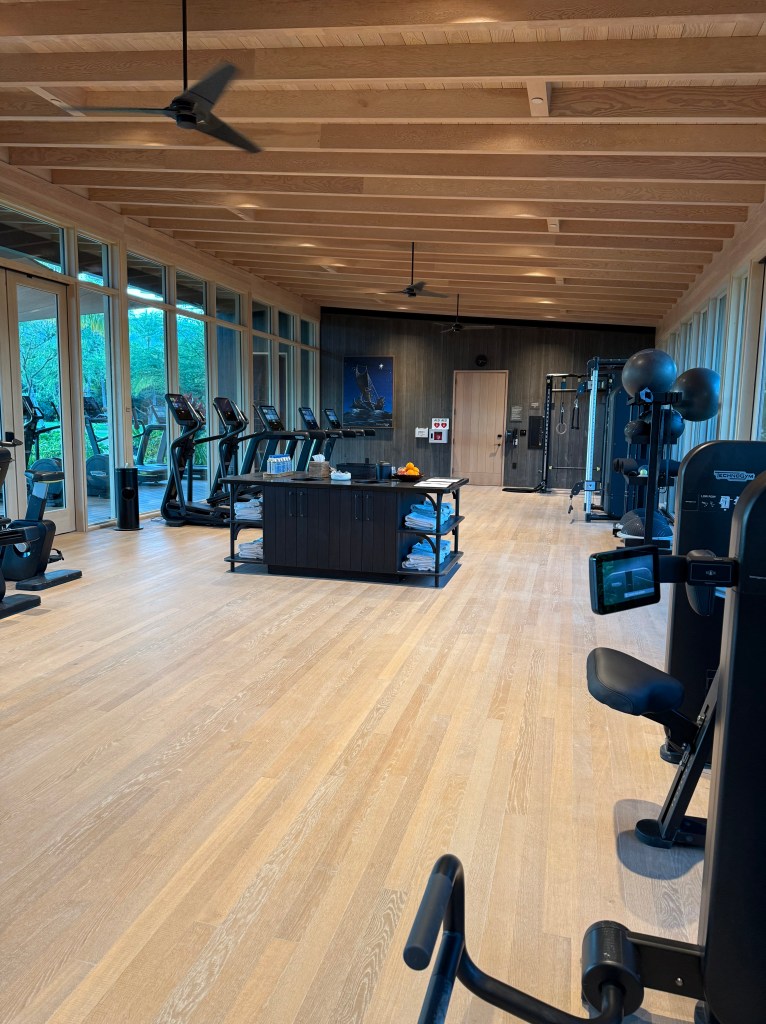 The outdoor area houses more machines – treadmills, ellipticals, peloton bikes, a rower, and stair mills. I did say “views” earlier, which may be a bit exaggerated, but there was indeed a mountain view. But, honestly, being able to work out outside in warmer weather was truly awesome. It didn’t need the most spectacular view to please me.