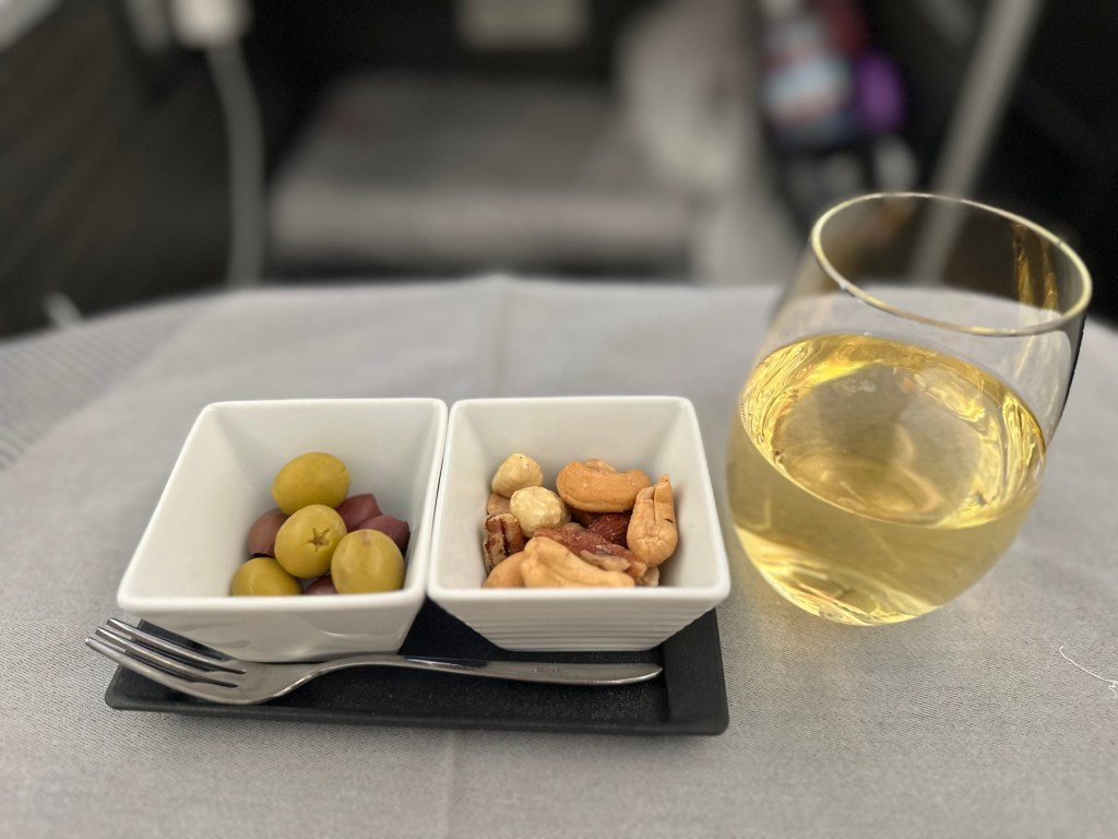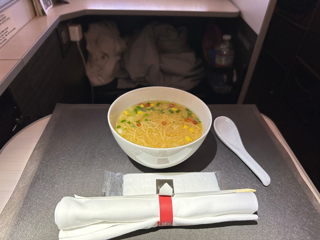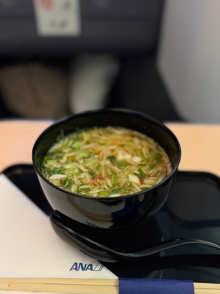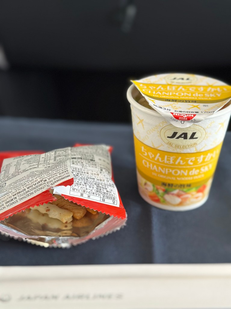 The Anytime Food options on both airlines are excellent, and I don’t have an overall favorite in this category. JAL had an amazing Oyakodon (chicken over egg and rice) one time in 2022 that was incredibly good, and their vegetarian ramen hit the spot when there were only 3 hours left on the flight, and I needed a pick-me-up. However, the BEST thing I have eaten on an airplane has to be JAL’s instant cup of noodles. I kid you not. I beg you to try it if you fly with them. It was so good that I swapped out either the appetizer course or the actual main course on some of the flights with just the tiny little yellow cup of instant noodles. I was very sad that I didn’t have that with ANA!