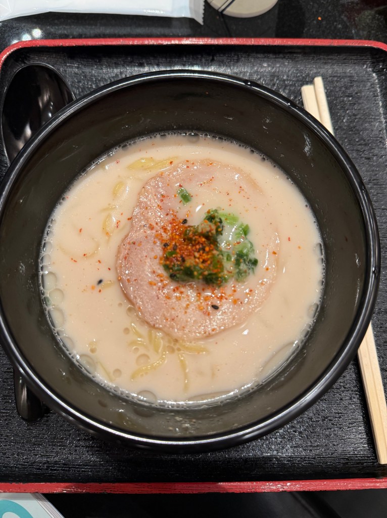 That said, the second best thing I have eaten on an airplane is ANA’s signature ramen that they just debuted a few months ago, replacing their infamous Ippudo ramen. I was a bit disappointed when I read that they no longer served Ippudo, but oh boy, they knew what they were doing. This ramen was so rich in flavor that the noodles were al dente – just the right texture. The broth was vegetarian-based, but I didn’t care at all. It was so delicious. Adding the garlic oil paste and a bit of the chili, that was enough for me to qualify as the first authentic ramen for the Japan trip!