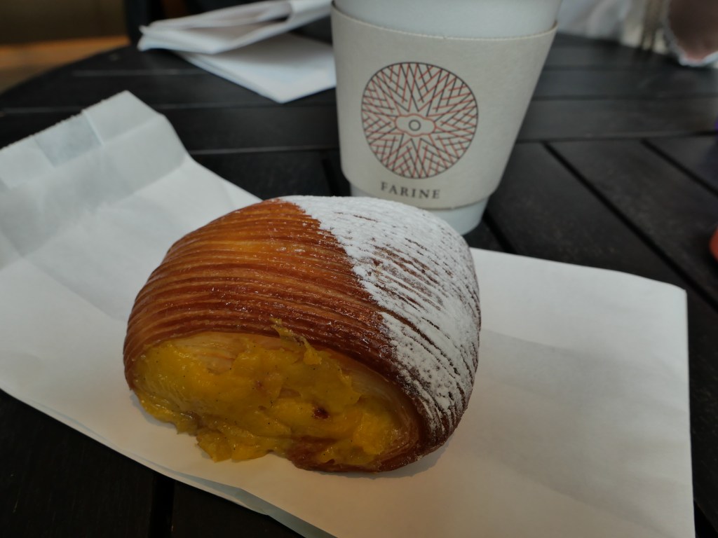 Another coffee spot that we frequented, but I would not recommend for coffee, is, sadly, at the Four Seasons hotel. Both my matcha latte and Toby’s cappuccino were very bitter, while the milk was not steamed well. It was convenient for the mornings when we had to get going, though. Another slight inconvenience was that, although there were seats available in the lobby where you could sit and drink the coffee, it wasn’t a sit-down type of coffee spot. Alternatively, we would have to eat at their restaurant, Farine, for a sit-down service. Not the biggest deal, however. Now, you must go for their pastries, and that alone was worth the try. Anything baked in that bakery was divine and scrumptious: the chocolate croissant, the pineapple croissant, the savory croissant, the lemon cake, and the scones! Heaven on earth. We did stop by for lunch at Farine on our last day, and their bread service was so good – not surprised because their pastry chefs were legit!