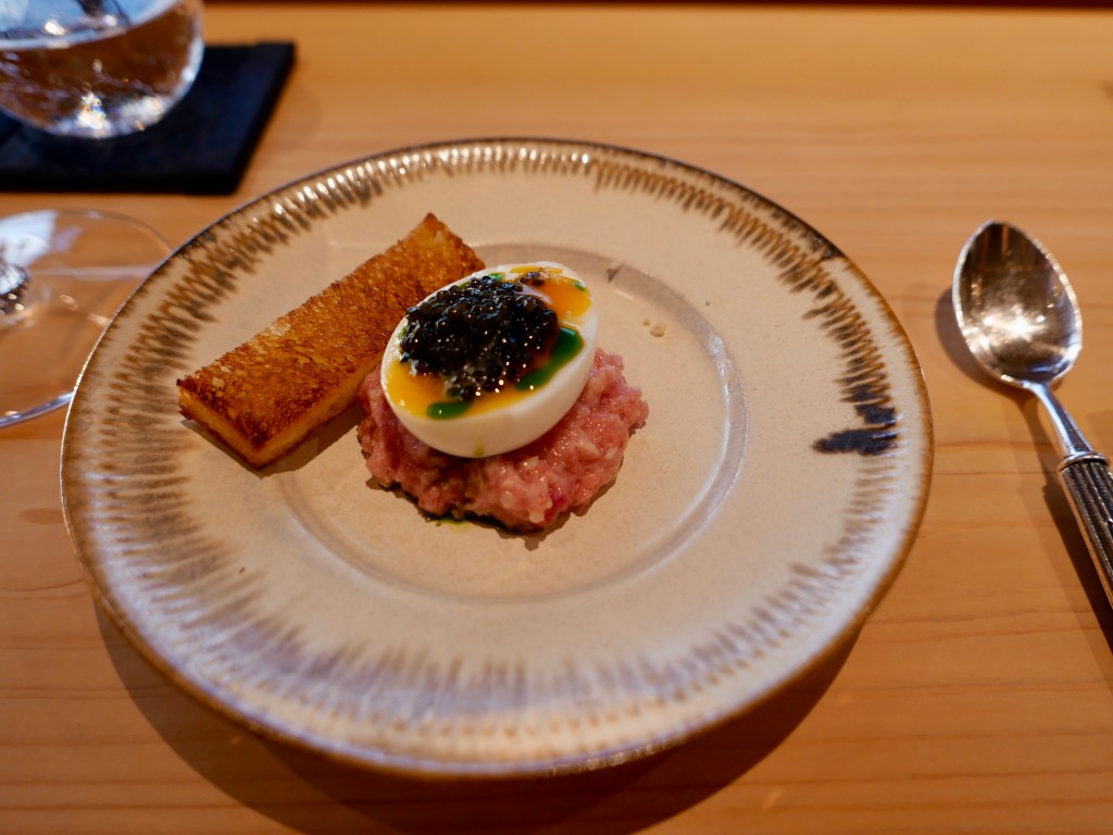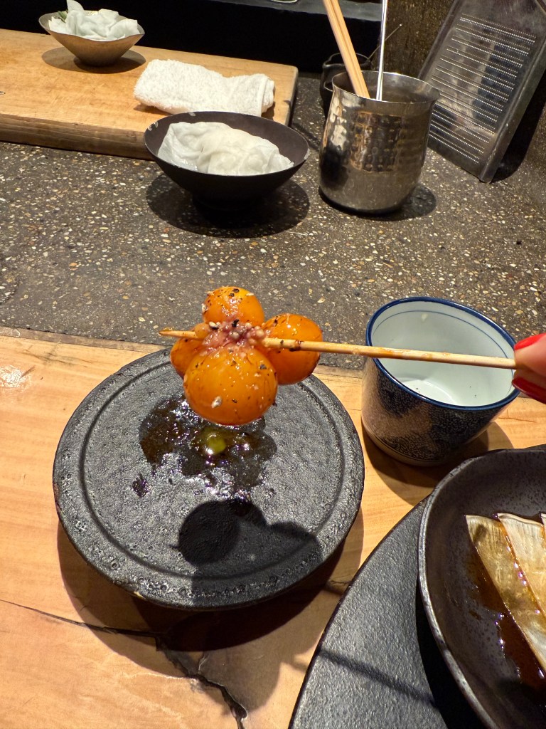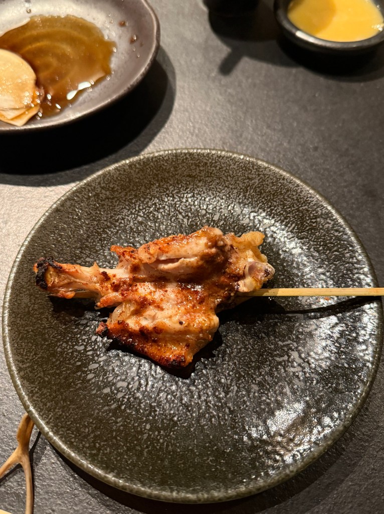 The food was yakitori, but in an omakase style. The plate was presented neatly, with a chicken bone cleaned and served as the chopstick rest. There was mustard and green onions as a palate cleanser in between courses. A lot of chicken cuts were served, after being grilled to perfection by the head chef. They used high-quality chicken Hinaidori from a farm with a certificate that was shown to all the guests, and those chicken bites had to be the best chicken meat I’ve ever had. Juicy and tender, even the chicken breast. There were intestines and other parts offered as well, but not included in our courses, as I did not choose them. They saw me looking at the chicken ovaries with my admiring eyes and grilled me some as well.