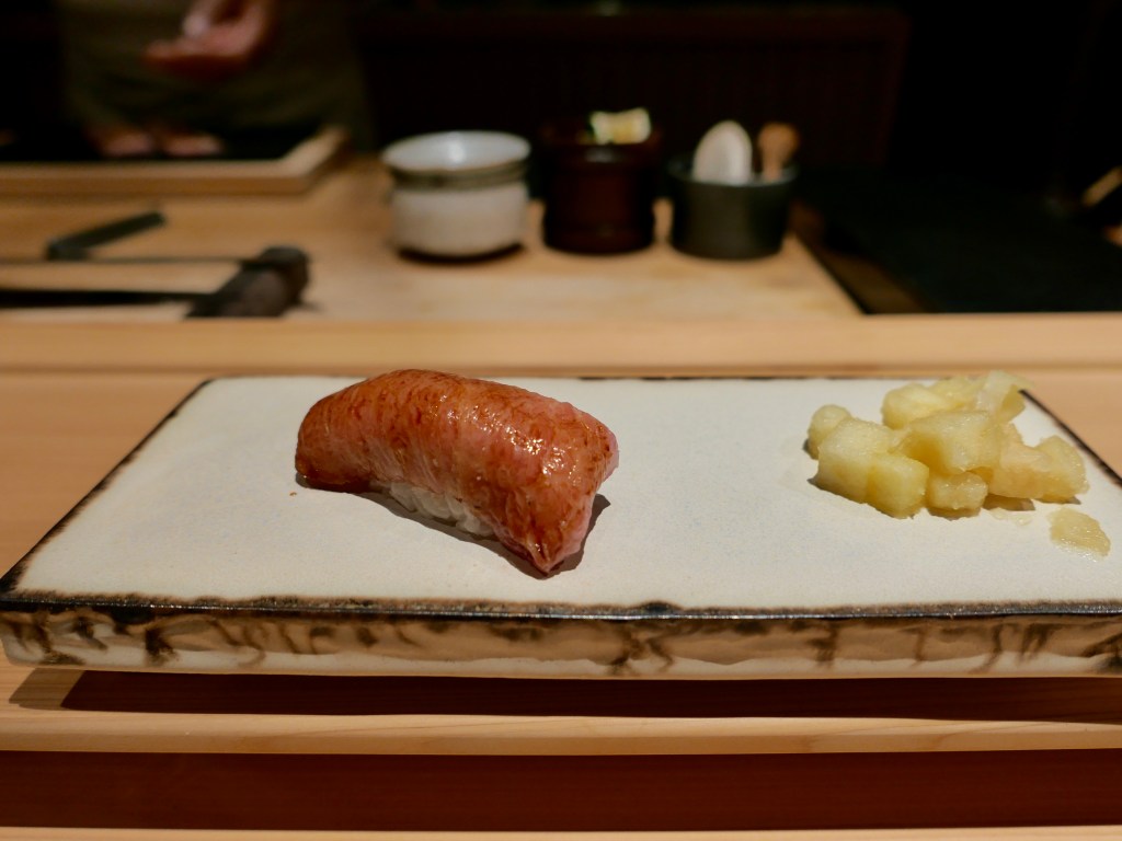 If you haven’t noticed, I have not mentioned a sushi meal at all until now. Yes, there are many ways to eat sushi throughout Japan, in any city. But we like to splurge on omakase sushi. And we did just that at Sushi L’Abysse Osaka, located right on the top floor of the Four Seasons Osaka. The view, no words. Sunset was a scene to remember for a long time. Even the night city view was beyond words. The food – there was a lot of food, not just nigiri but also cold and hot dishes as part of the menu. Obviously the fish was super fresh, but the technique to sear the fish was very cool. Their desserts (yes, 4 desserts) were prepared in unique ways as well – very impressive. I don’t think I can use words to describe this meal – it was perfectly done. Food cooked or (not cooked but) presented very well. Every bite was delicious; and the wine & sake pairing worked well with the dishes. The service was as expected, attentive but friendly. We were lucky to serve by chef Yasuda Itaru and he was a subtle funny guy. Thank you, chef!