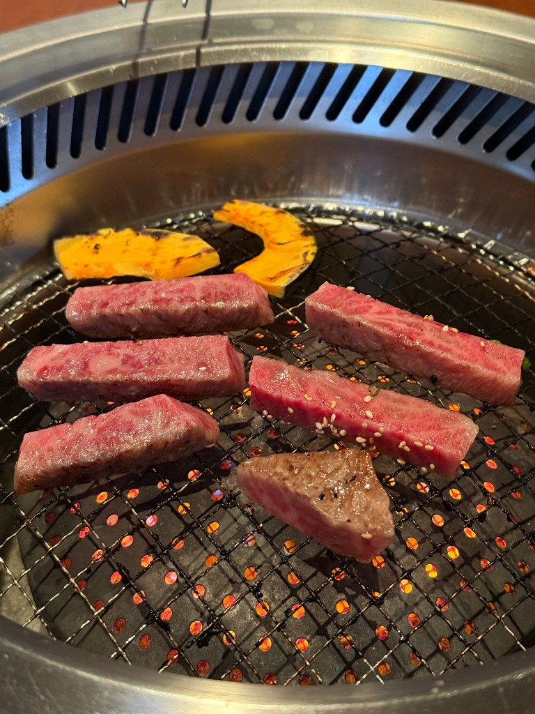 Anyway, we got seated upstairs in the 3-connected rooms with this big group. The menu was a set dinner and all-you-can-drink for 90 minutes; all ordering was done before we even arrived at the restaurant, as it was required for group dining. Similar to Korean BBQ, which is more well-known in the West, we had a variety of beef cuts and parts to grill. There aren’t as many banchans (side dishes) as in a Korean BBQ, just simple kimchi and pickled cucumbers. There was no Kobe Beef, and you know what, it wasn’t needed. Some pieces were incredibly tender, while others were intentionally chewy. Belles were full, a lot of laughs were had, and a lot of fond memories were secured.