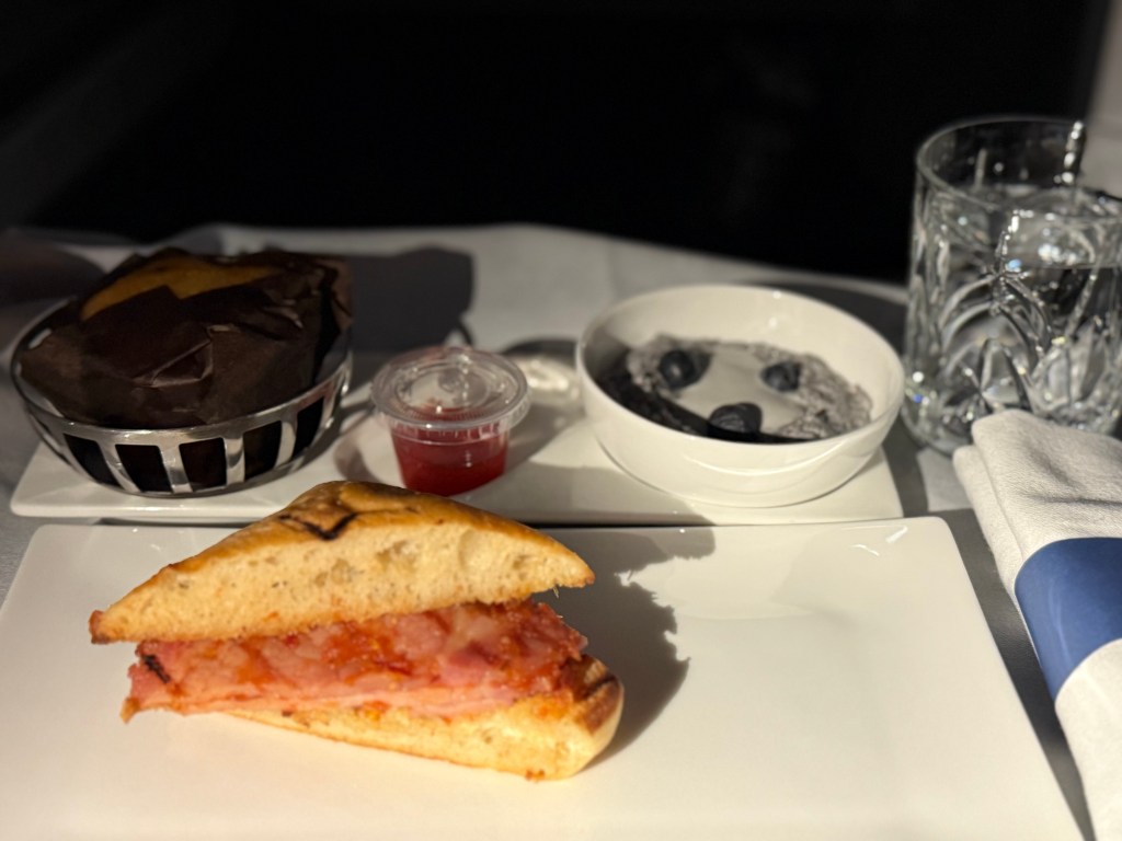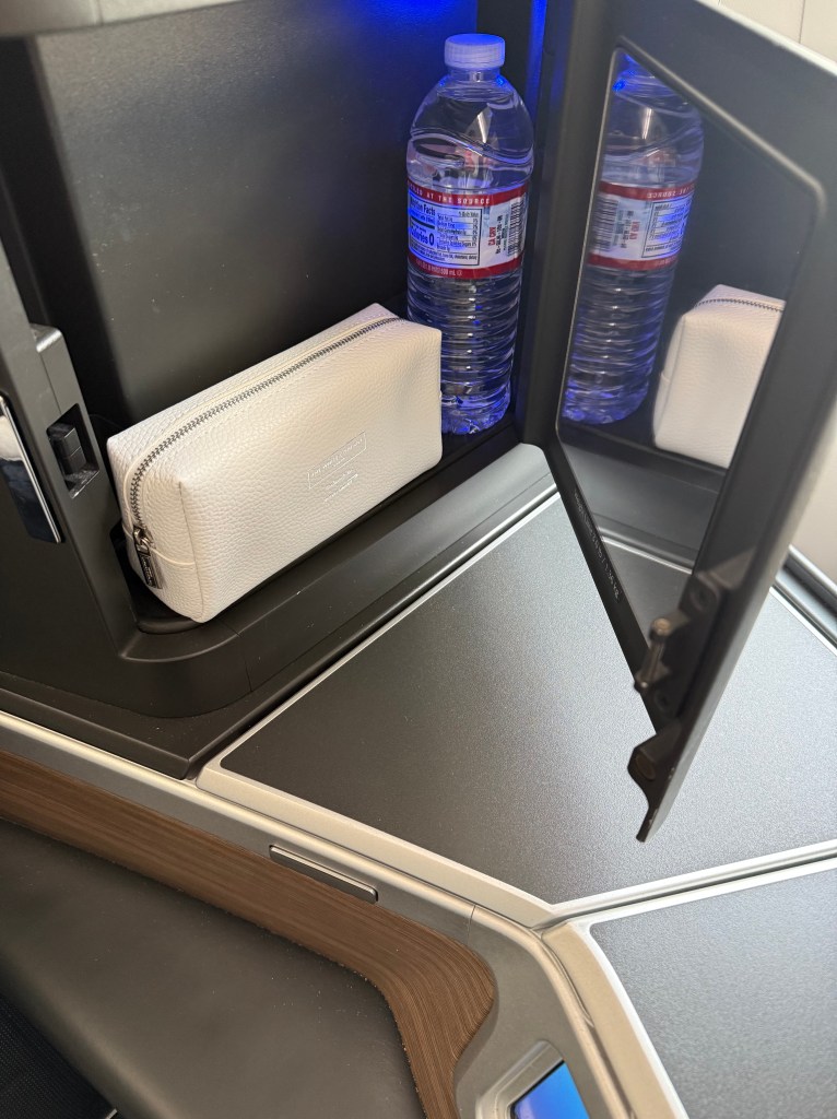 At this point in the flight, things were great. Well, the crew was not the most friendly or warm, but they did their job. Getting the order and bringing the food out correctly, the service was not anything to rave about, but it was efficient. Within an hour and a half, I was done with the main meal service, skipped the dessert (as always), brushed my teeth, set up my bed, and went on my way, trying to catch a few hours of sleep. We couldn’t close the door, though, until they unlocked it after the meal service, which was fine. I didn’t think the door added that much more privacy to what we already had. Having it closed made the entire sleep more cozy, I guess.